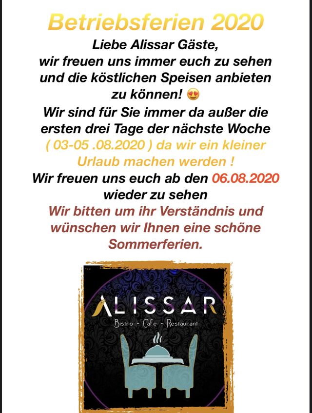 Ein unterhaltsamer Abend mit hausgemachtem arabischem Essen – in unserem Restaurant servieren wir Ihnen frisch zubereitete Gerichte in einer ansprechenden Atmosphäre. Im „Alissar Restaurant“ bieten wir vielfältige und köstliche Speisen, die bei stimmungsvollem Ambiente gleich doppelt so gut schmecken. Des Weiteren finden Sie bei uns Köstlichkeiten der mediterranen Küche. nn Probieren Sie doch einmal unsere vegetarischen, halal und veganen Speisen und entdecken Sie die ungeahnte Vielzahl an Gerichten. Wir bieten außerdem eine leckere Auswahl an glutenfreien oder laktosefreien Gerichten für eine extra gesunde Ernährung. Sie werden überrascht sein, wie umfangreich die Möglichkeiten sind, sich mit Köstlichkeiten zu verwöhnen und trotzdem dabei die Gesundheit immer im Blick zu behalten. Wir organisieren regelmäßig Live-Auftritte von Musikern, die unser Publikum begeistern.